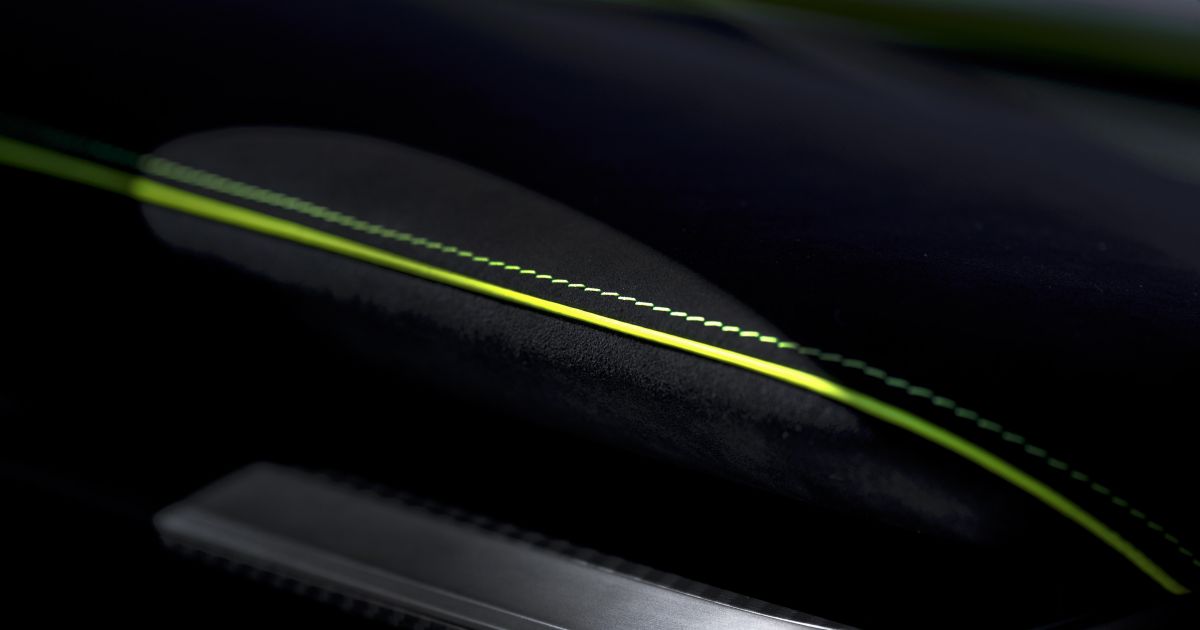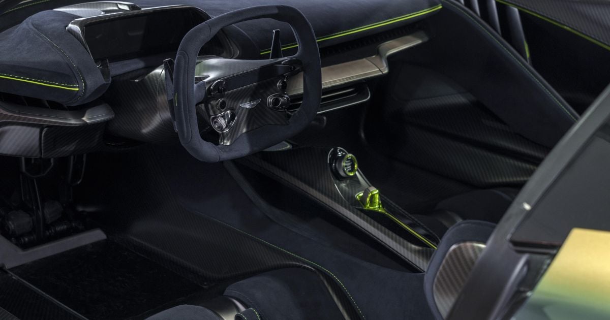 In fact, scrutinizingly anything inside Valhalla which isn’t exposed carbon-fibre is wrapped in the same stitched upholstery – that’s the dash, steering wheel, door cards and centre-console.